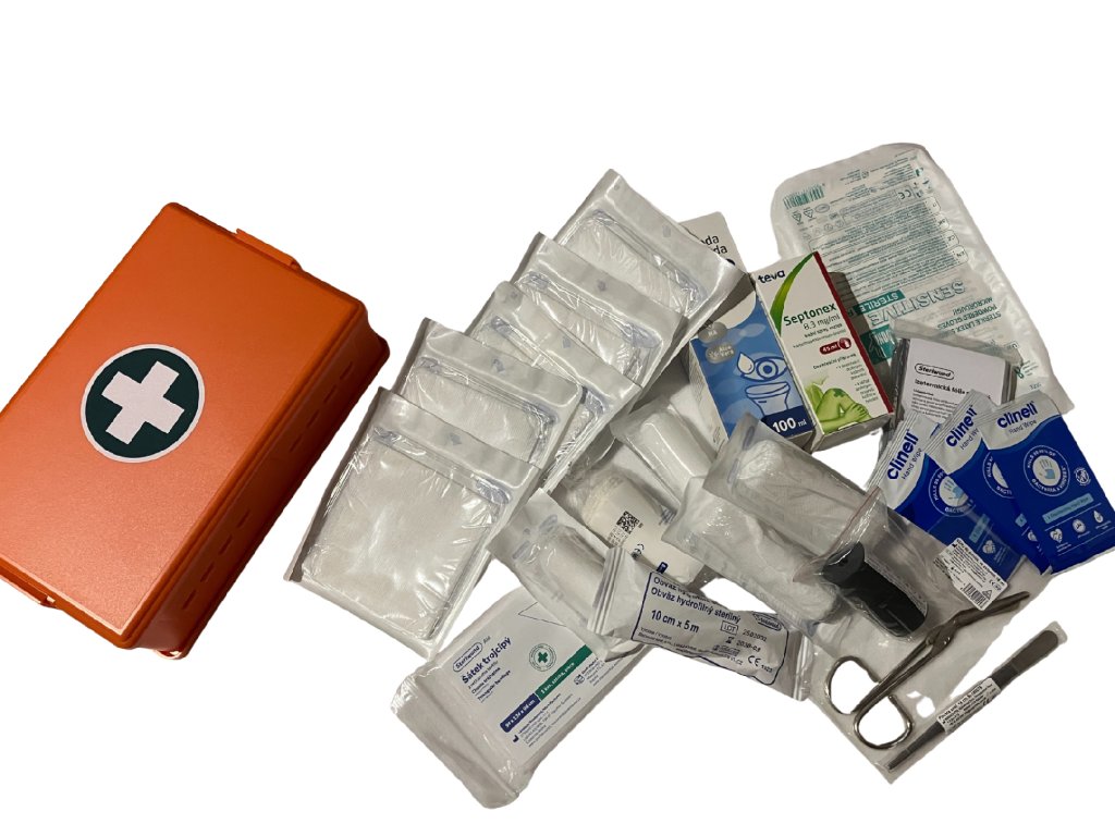 Lékárnička - mobilní kufřík slouží pro poskytnutí první předlékařské pomoci, dle článku 22, odstavce 1 nařízení Evropského parlamentu a Rady (EU) 2017/745, o zdravotnických prostředcích (MDR)